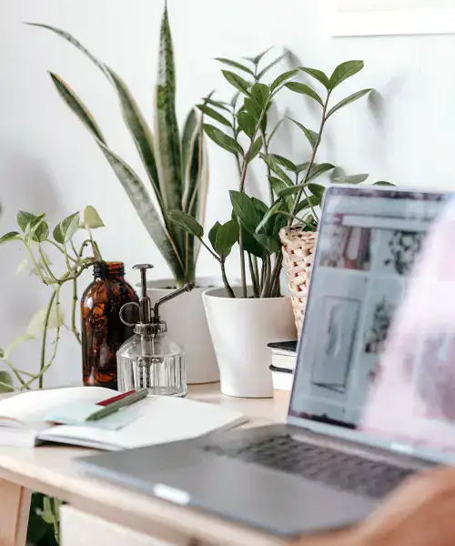Planten creëren een zachtere, meer ontspannen sfeer, wat bijdraagt aan een gevoel van welzijn en innerlijke rust. Ze helpen je even los te komen van je scherm en je blik te verruimen, wat essentieel is voor mentale veerkracht gedurende de dag.
